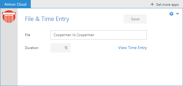 ● Duration – Filled in automatically based on how long the timer on the previous pane had been running. The Preferences you specified in Amicus Cloud take priority.