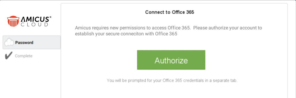● Click Authorize to log into Office 365 to establish the connection.