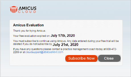 ● Click Subscribe Now at any time during the evaluation period to start a subscription for the firm.